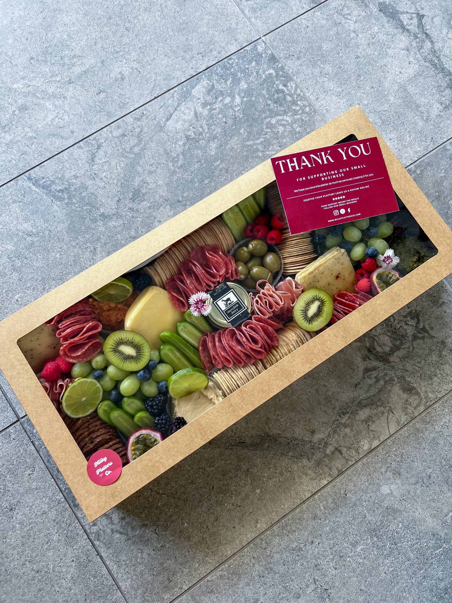 Please note, items may vary slightly depending on availability, seasons, and any custom requests. If you’d like your platter personalised, Milky Platters Co is always happy to tailor it to your needs.